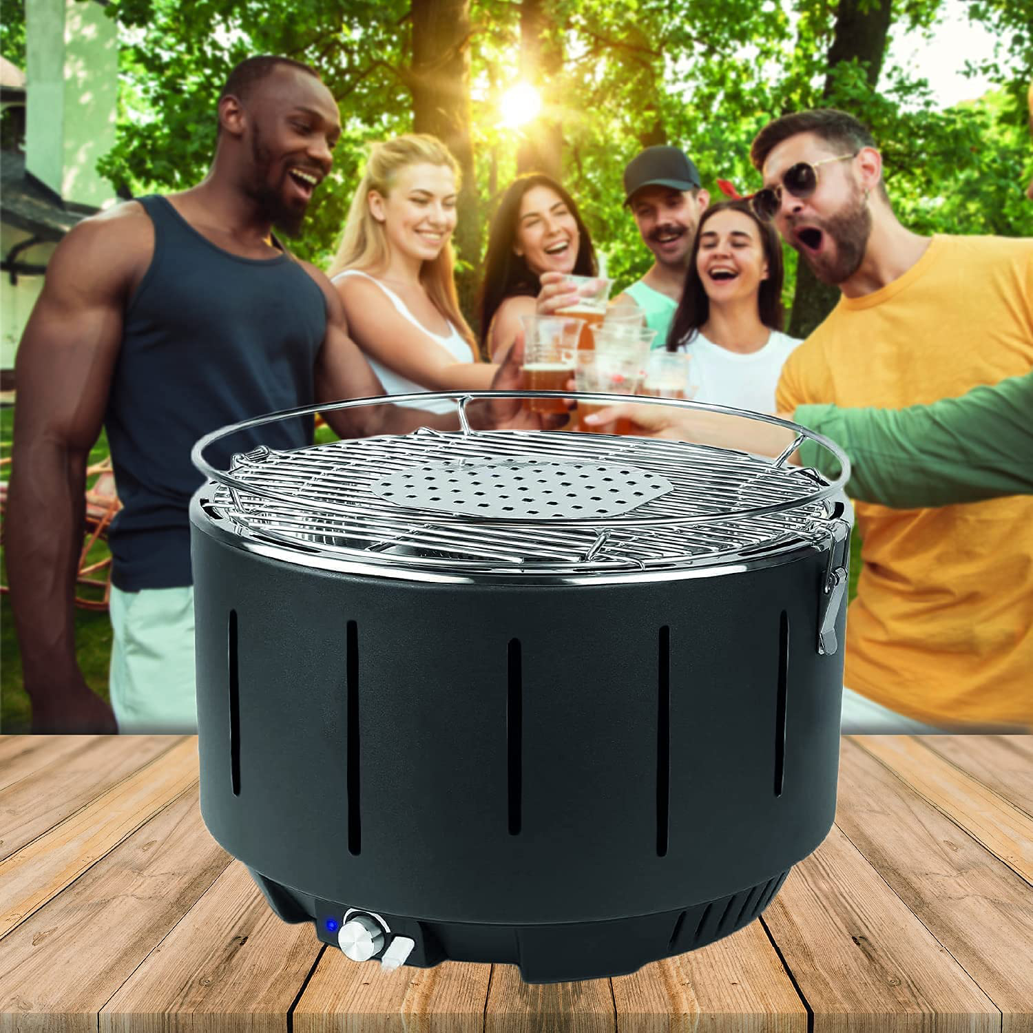 Ventiliatorius gali buti valdomas per USB maitinima arba baterija. ˇemiau esantis ventiliatorius gali efektyviai valdyti anglies degimo greiti ir grilio temperatura (didinti arba suletinti). Apvali konstrukcija, vejo kryptis ir šilumos atspind˛io ertme u˛tikrina greita grilio ikaista.