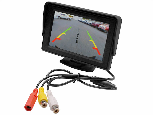 Monitorius galinio vaizdo kamerai. Skirtas galinio vaizdo kamerų sumontavimui automobiliuose su gamykline garso sistema, neturinčia linijinio vaizdo signalo įėjimo.