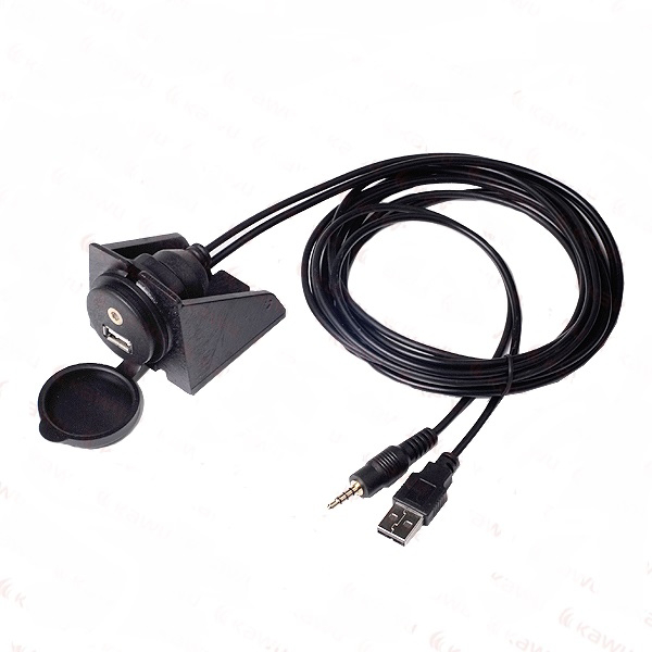USB ir AUX lizdo jungtis su laikikliu profesionaliam USB ir AUX jungties sumontavimui automobilyje ar bet kur kitur.