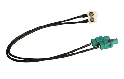 Antenos adapteris. Skirtas montuojant gamyklines magnetolas su FAKRA B antenos jungtim i automobilius su dviem FAKRA Z antenos jungtimis. Jungties tipas: dviguba FAKRA B kampu - dvi atskiros FAKRA Z.