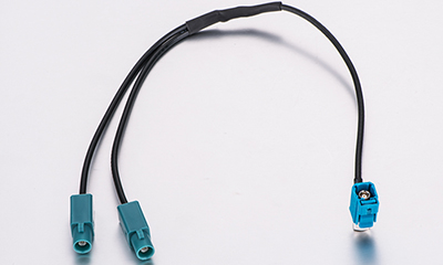 Antenos adapteris. Moteriska Fakra jungtis pereinanti i dviguba moteriska Fakra Y jungties sakotuva. Skirta Volkswagen automobiliams.