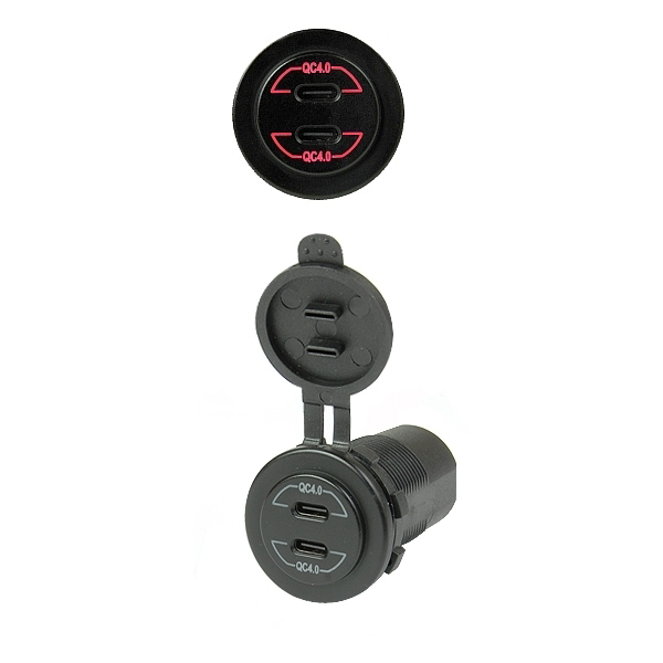 Automobilinis USB su dviem lizdais: QC4.0 PD Type USB C 3.0A – skirtas greito ikrovimo irenginiams. Power Delivery (PD) technologijos deka galite ikrauti nešiojamaji kompiuteri, planšetini kompiuteri ar išmanuji telefona maksimalia galia. Integruotas integrinis grandynas atpazista automatiškai prijungta irengini, kuris igalina efektyvu ir optimalu ikrovimo procesa. Maitinimo šaltinis, skirtas naudoti transporto priemoneje, priekaboje ar sunkvezimyje.